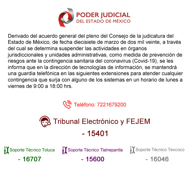 Poder Judicial del Estado de México Nicolás Bravo Nte. 201. Colonia Centro, Toluca. México. Tel: (722)167-92-00 v.1.0.13